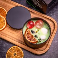 FÉM ILLATGYERTYA díszdobozban 200g – Édes narancs – Ez az isteni narancsillatú gyertya tökéletesen belengi otthonodat és meleg fénnyel árasztja el, ráadásul szárított gyümölcsökkel, kagylókkal és kavicsokkal díszített, amelyek gyönyörűen csillognak égés közben.