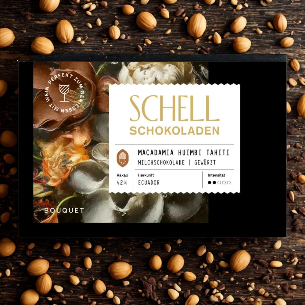 Tejcsokoládé makadámdióval 50g — Ilyet még biztosan nem ettél! Különleges ecuadori kakaóból készült tejcsokoládé, pörkölt makadámdióval és tahiti vaníliával, enyhén fűszeres jegyekkel. Kiválóan illik borhoz, finom rumhoz vagy szilvapálinkához.