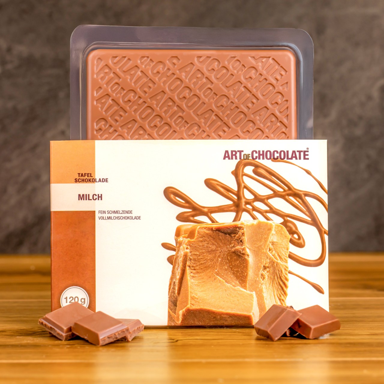Csokoládétábla Tejcsokoládé 120g — Tiszta csokoládé, kompromisszumok nélkül. A német Art of Chocolate családi csokoládéműhely a legmagasabb minőség garanciája. Finom tejcsokoládé, hagyományos recept alapján, a legjobb alapanyagokból. Élvezd minden falatját!