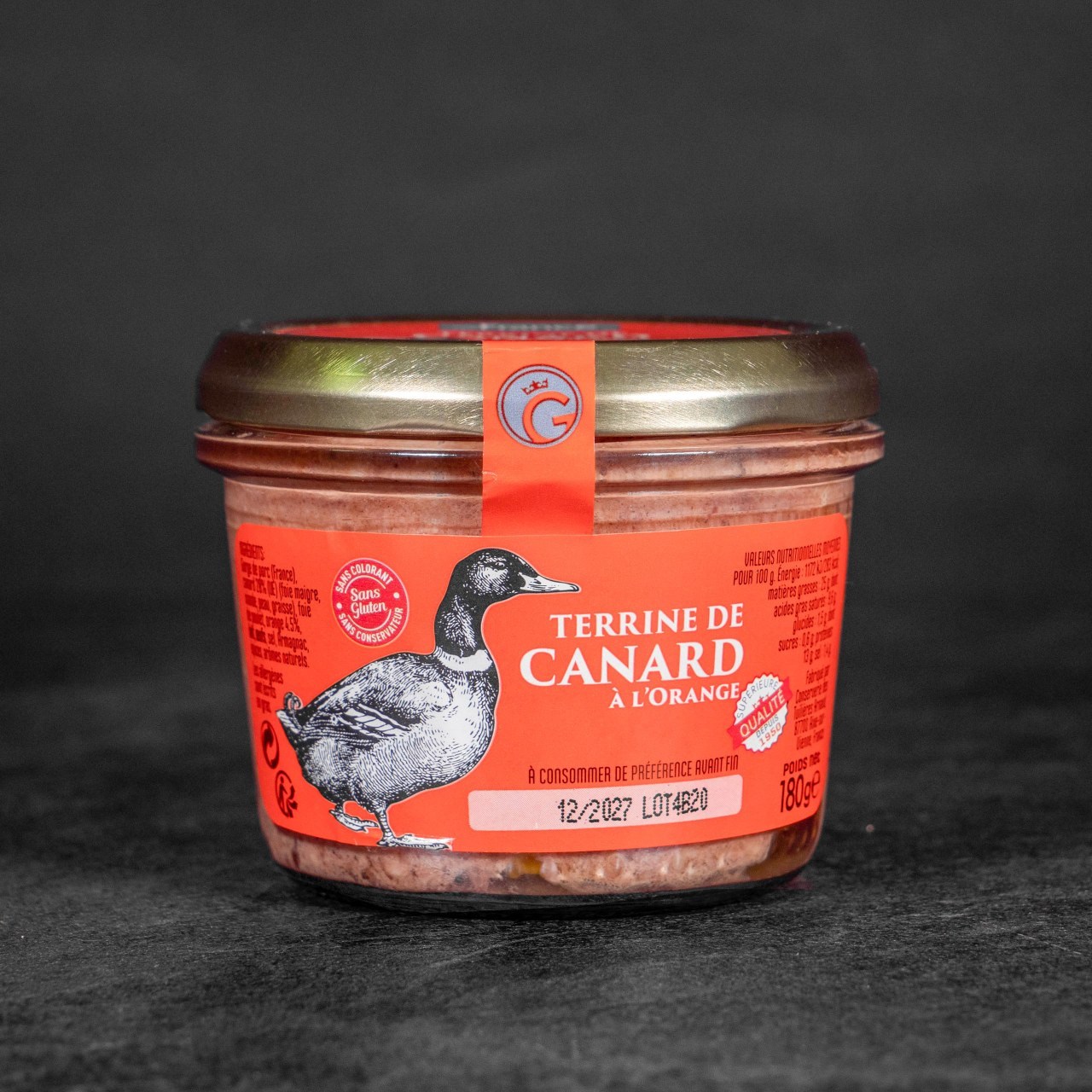 Hagyományos francia kacsaterrin naranccsal – Tökéletes ízkombináció kacsahúsból, minőségi francia armagnacból és érett narancsból. Legjobban hidegen, egy pirított bagettszeletre kenve élvezhető.