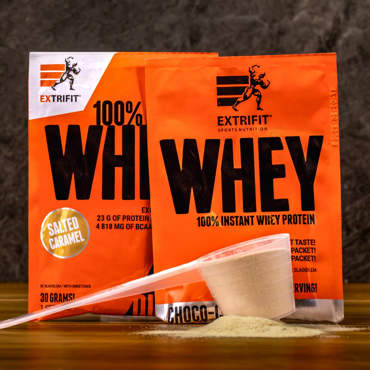 Extrifit 100 % Whey Protein 30 g – sós karamell – Kiváló tejsavófehérje sós karamell ízben, praktikus csomagolásban — ideális útközben!