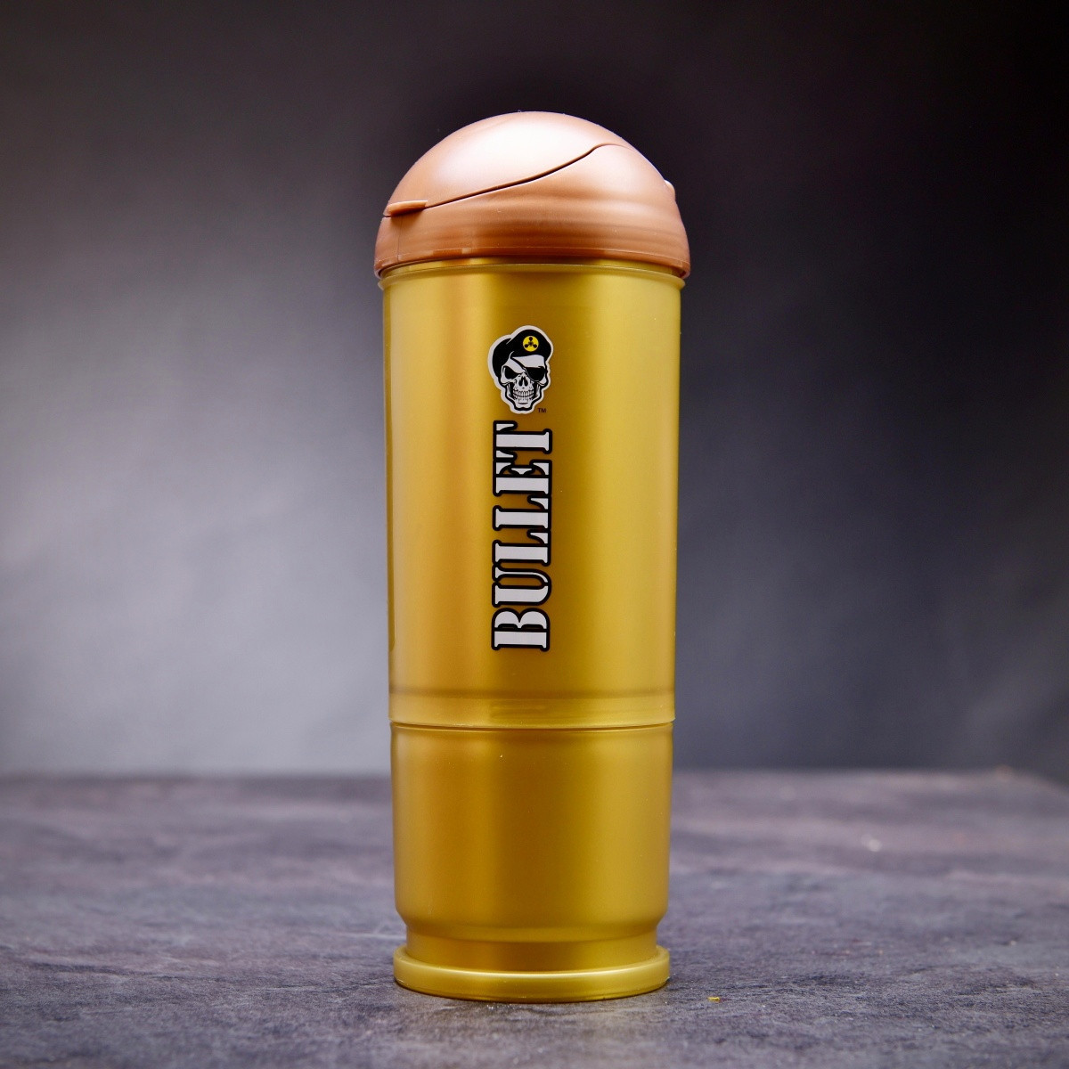 Stílusos shaker töltényformában – 600 ml - Fegyverkezz fel az edzéshez ezzel a különleges shakerrel! Ez a 9 mm-es töltény formájú (természetesen életnél nagyobb) stílusos kiegészítő garantáltan feltüzel a legkeményebb edzésekhez. A szabadalmaztatott dupla tömítéses kialakítás gyorsan és alaposan elkever minden poralapú kiegészítőt. Az alján csavarható rekesz található, ahol tárolhatod a kiegészítőidet vagy apróbb dolgaidat. Kiváló minőségű, BPA- és DEHP-mentes gyantából készült – kibírja még a legrobbanékonyabb edzést is.