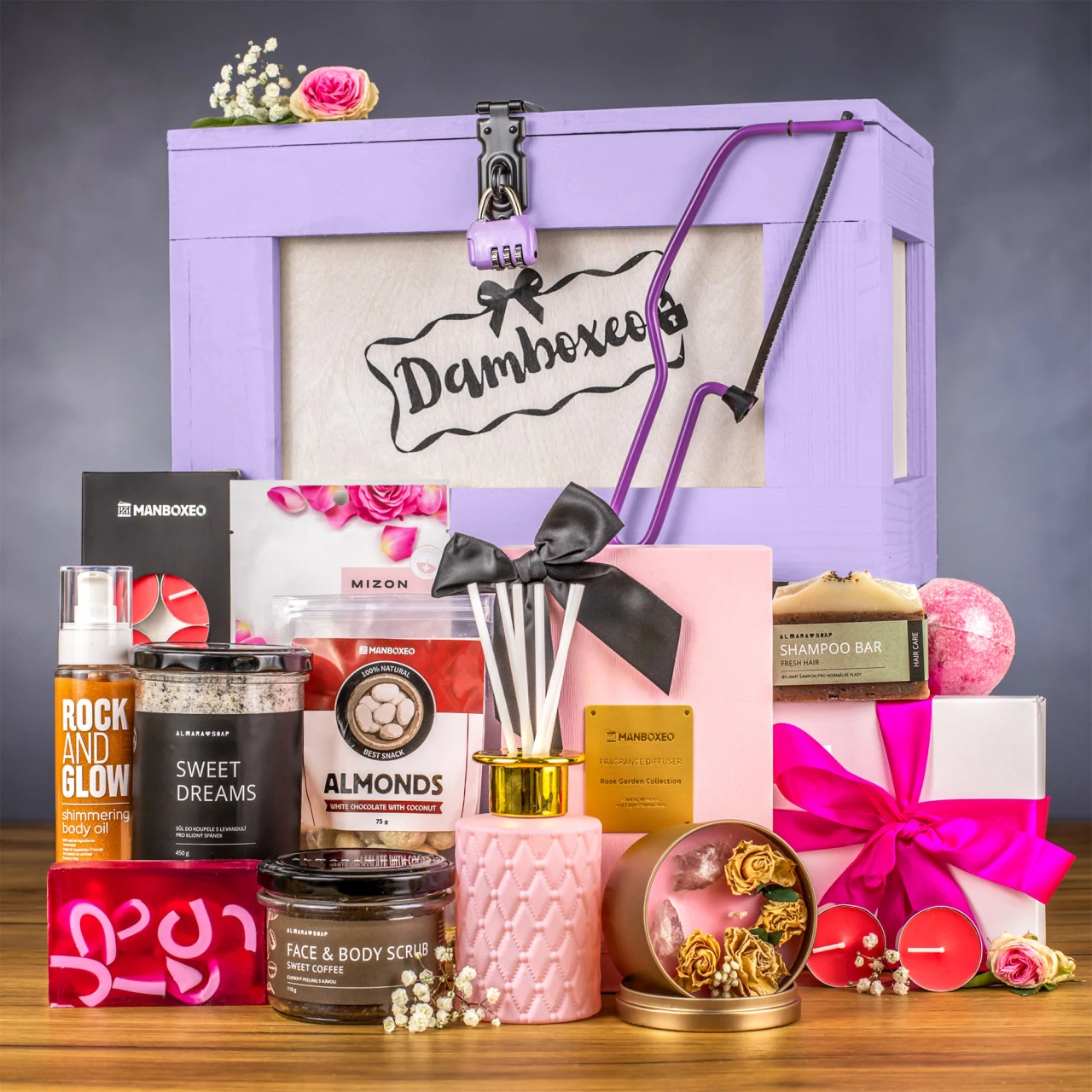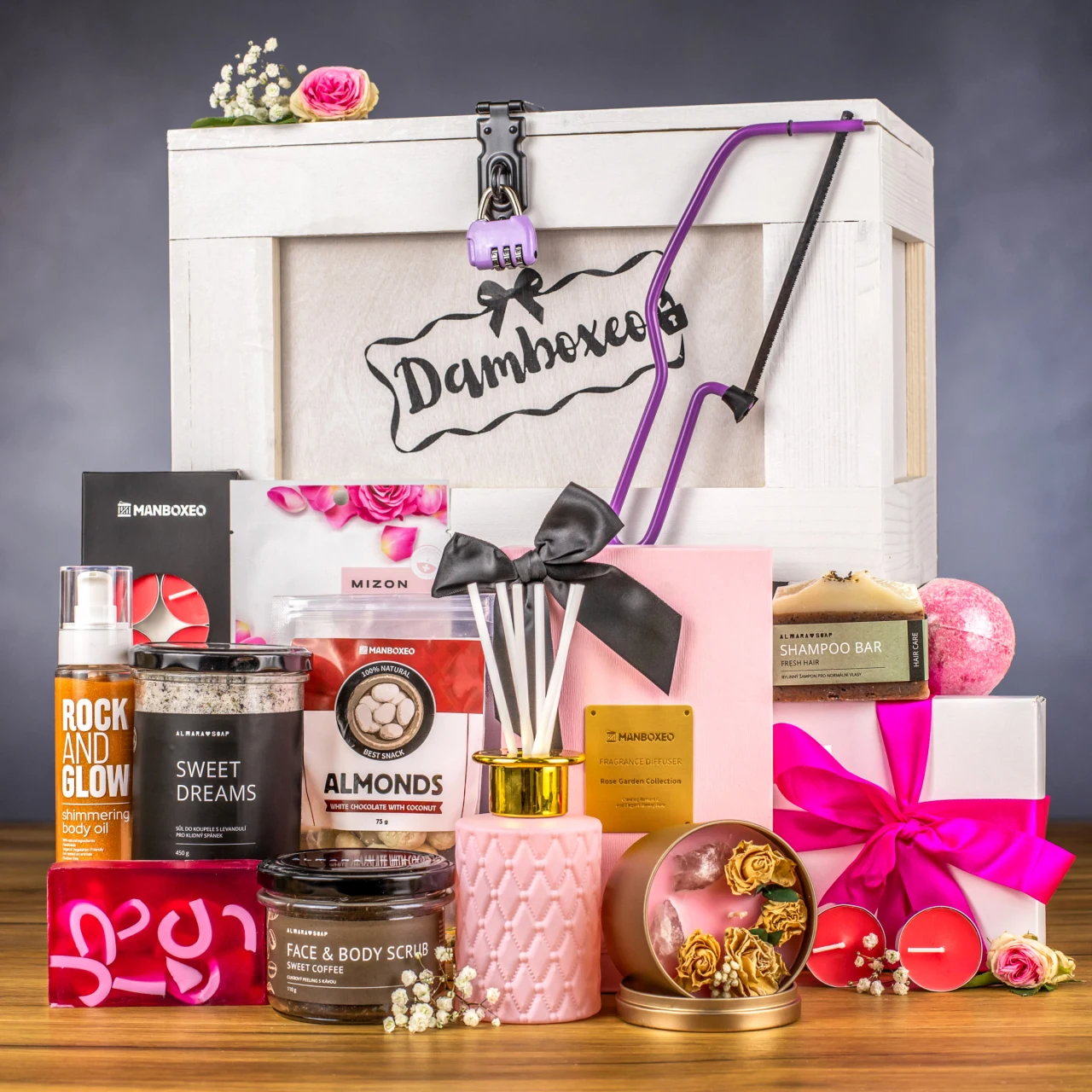 Lehullott a lakat? Akkor az ünnepeltet végre várja a jutalma. A láda az utolsó centiméterig tele van illatos és ehető meglepetésekkel. A minőségi proseccót luxuskozmetikumokkal, illatgyertyákkal és egy édes finomsággal egészítettük ki – így tökéletes relaxációs élményt nyújt, igazi otthoni wellness formájában. És ezt akarod. Mostantól jobb, ha nem állsz közé és a láda közé… könnyen bajod eshet!