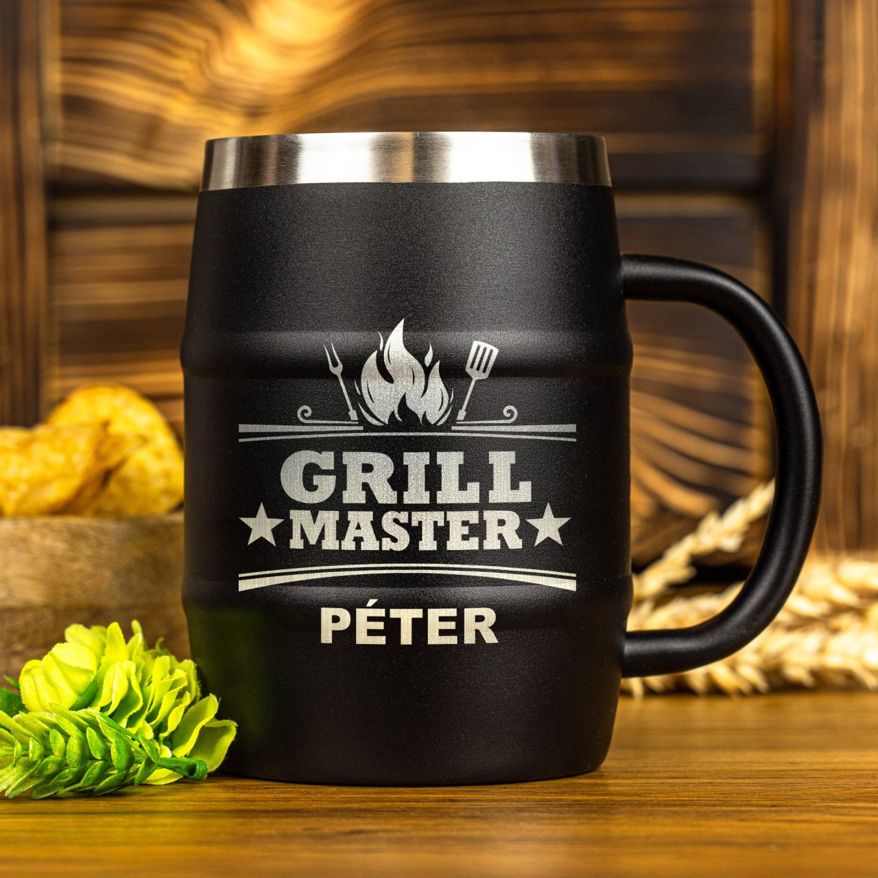 A sör akkor a legfinomabb, ha stílusosan isszuk! Ez az elegáns fekete rozsdamentes acél söröskorsó tökéletes társa minden sörkedvelőnek – legyen szó grillezésről, garázsbuliról vagy hétvégi pihenésről. A gravírozási lehetőségnek köszönhetően személyes és egyedi ajándékká válik, amely minden aranyszínű nedű rajongóját örömmel tölti el.