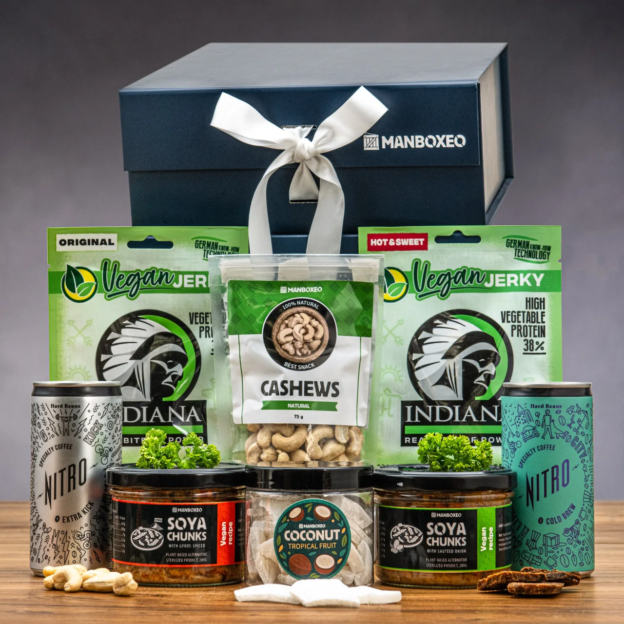 Mit rejteget ez a látszólag egyszerű doboz? Nagy dolgokat! A megajándékozott vegán különlegességeknek örülhet, amelyek minden érzékét elvarázsolják. Különféle finomságok, prémium kávé – és ezzel még nincs vége. Ezt egyszerűen a saját bőrödön… vagy inkább az érzékeiddel kell megtapasztalni!