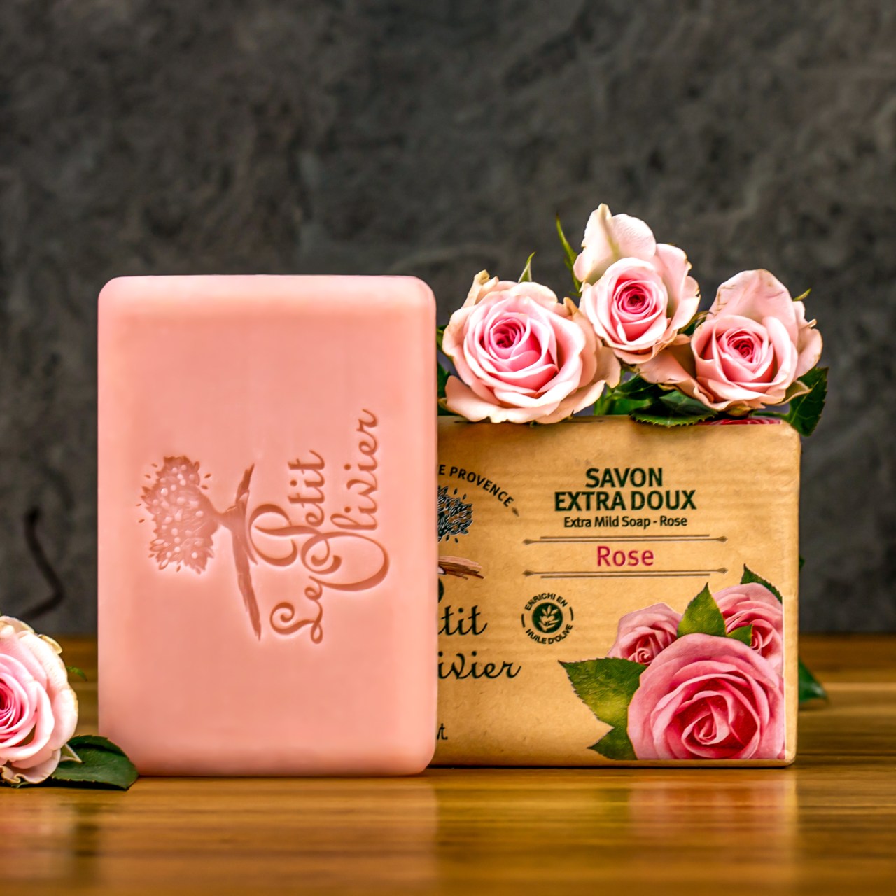 Le Petit Olivier – Rózsa Extra gyengéd szappan 100 g – Tökéletes szappan, ami gyengéden tisztít, mesésen illatozik, és pamutzsákban érzi magát a kezed.