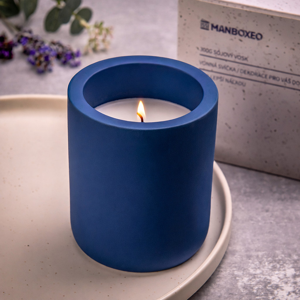 Betongyertya szójaviasszal és intenzív illattal 300 g – Levendula & eukaliptusz