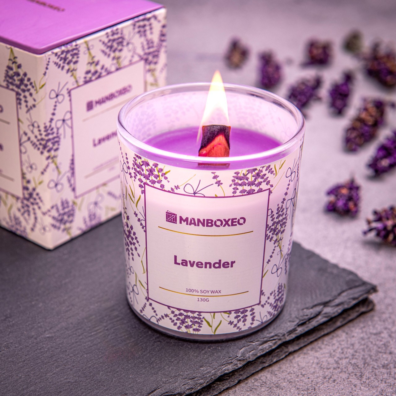 2× lila luxus illatgyertya 130 g – LEVENDULA