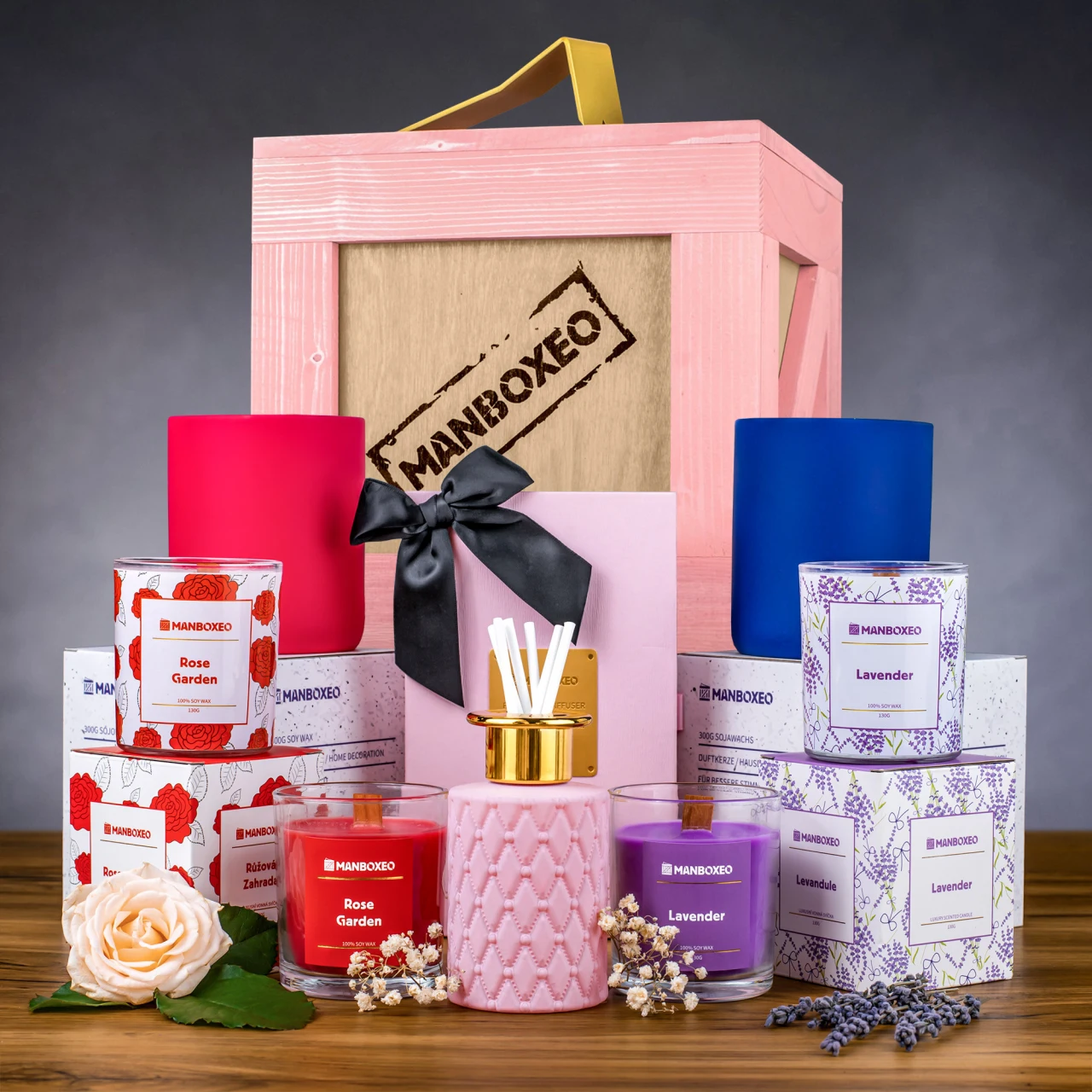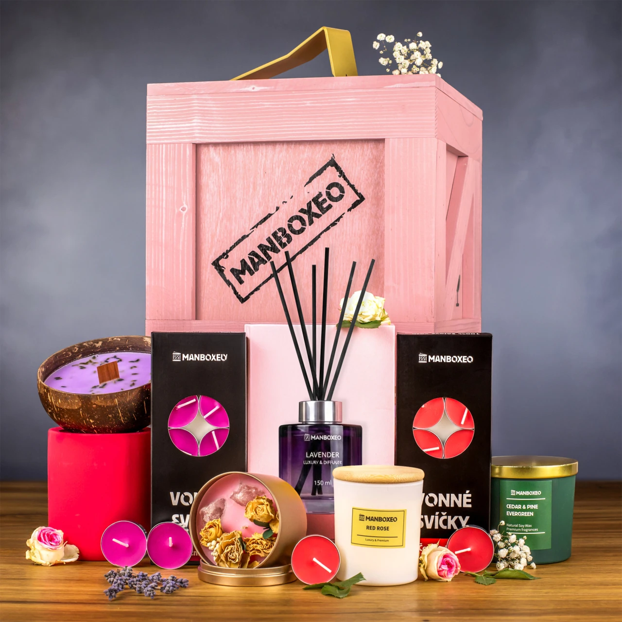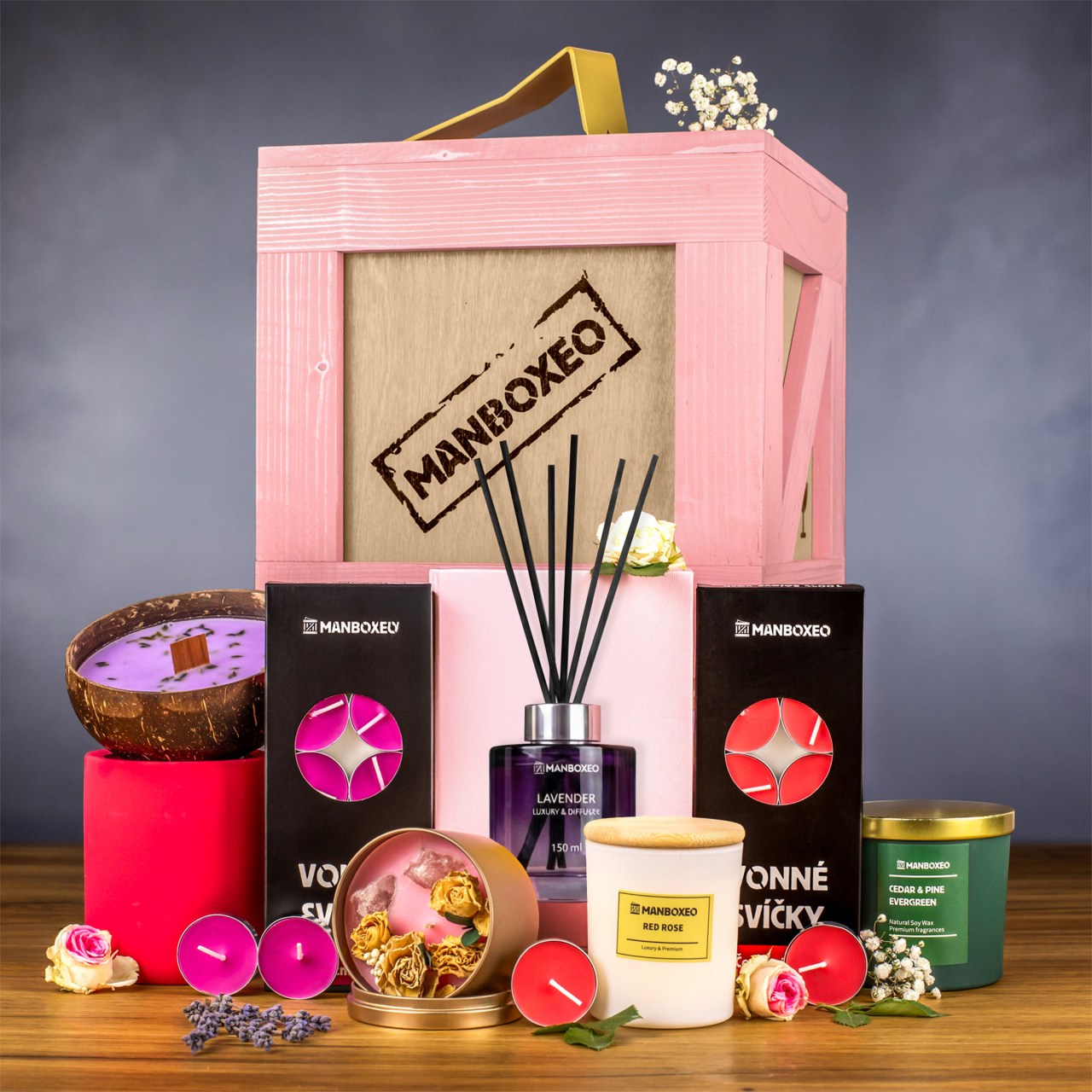Az ajándékozott imádja a virágos illatokat? Akkor jobb, ha mögötte állsz, amikor kinyitja a ládikát – hátha meginognak a lábai az örömtől! Odabent ugyanis egy csodás adag gyertya és egy aroma diffúzor vár rá, melyek illata egy virágzó kertbe repíti őt. Megéri, hidd el!