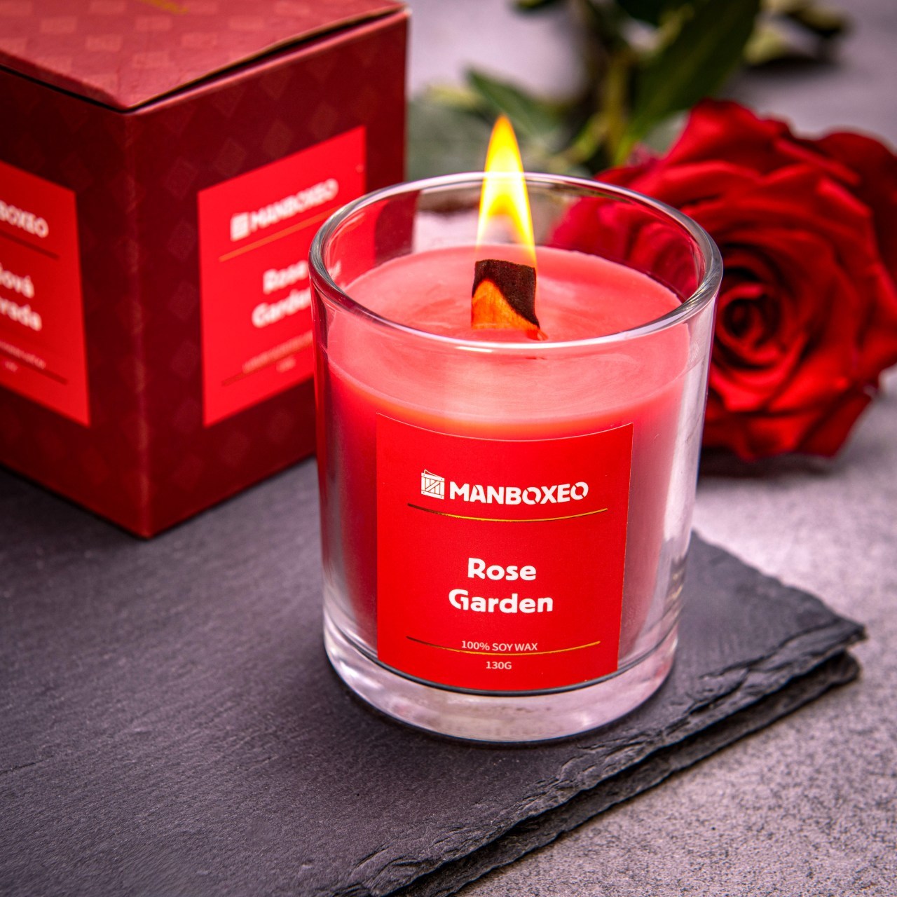 Betongyertya szójaviasszal és intenzív illattal 300 g – Red Rose