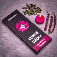 Lila-fekete ILLATMÉCSES 10 db – LEVENDULA & ROZMARING – 1 doboz, 10 ok az örömre – ezek a mécsesek a levendula és rozmaring friss kombinációjával töltik meg a helyiséget és kellemes fényt sugároznak.