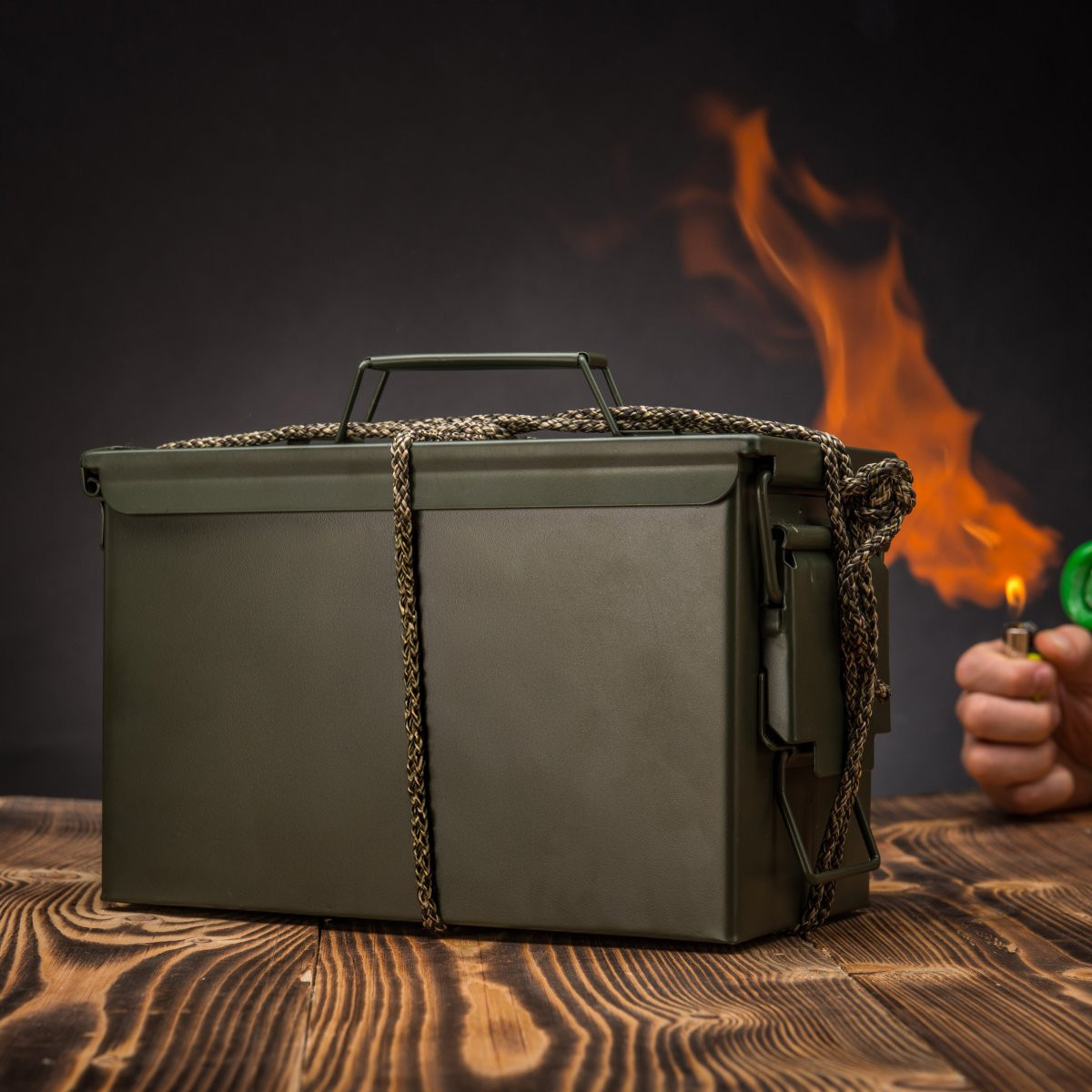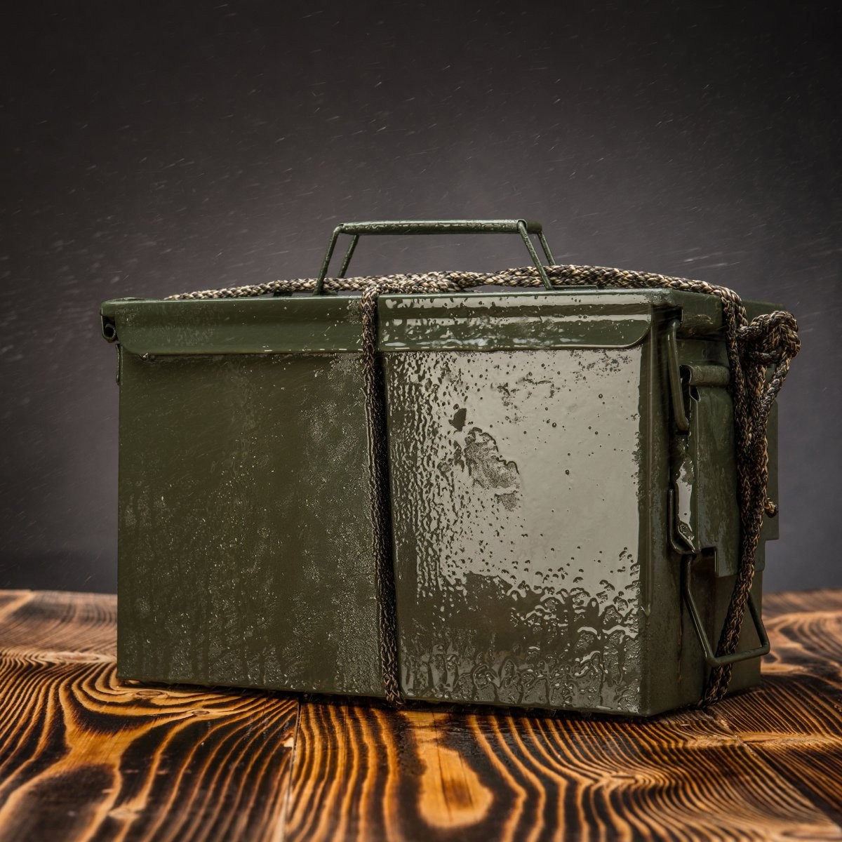 Küldjük az üres Armyboxeo lőszerdobozt 3 méter paracorddal és töltőanyaggal, hogy te magad tölthesd meg tetszés szerint. Ez egy vadonatúj, használaton kívüli láda a gyártótól, amely ezeket a ládákat forgalmazza az amerikai hadseregnek.