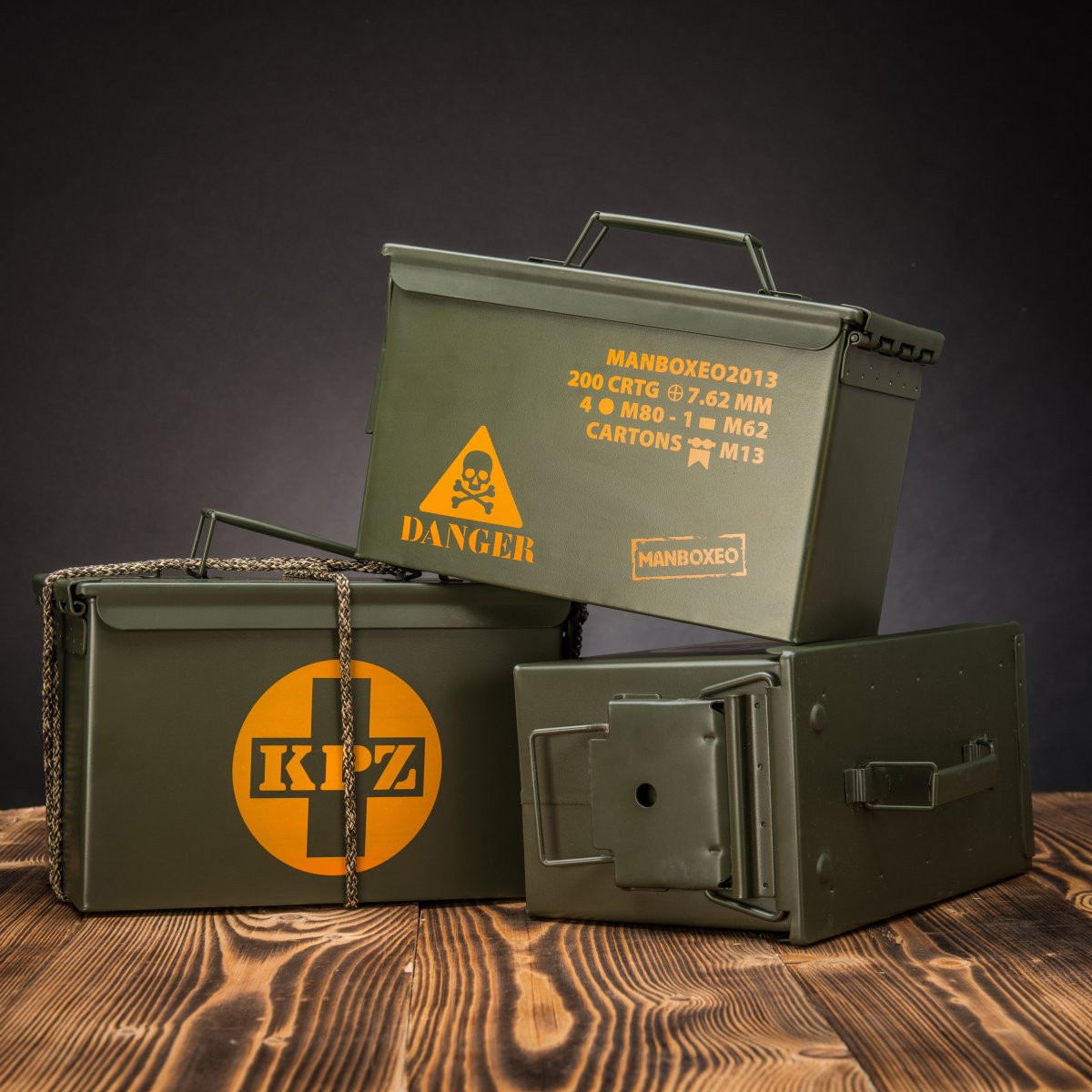 Ez egy igazi kincs minden katonai stílus kedvelőjének. Egy stílusos lőszerdoboz, szorosan körbetekerve egy tartós kötéllel, rajta több gondosan megkötött csomóval. Aki megkapja, annak meg kell küzdenie ezekkel a csomókkal. Csak ügyes kezekre, nyugodt elmére van szükség, és a siker garantált!