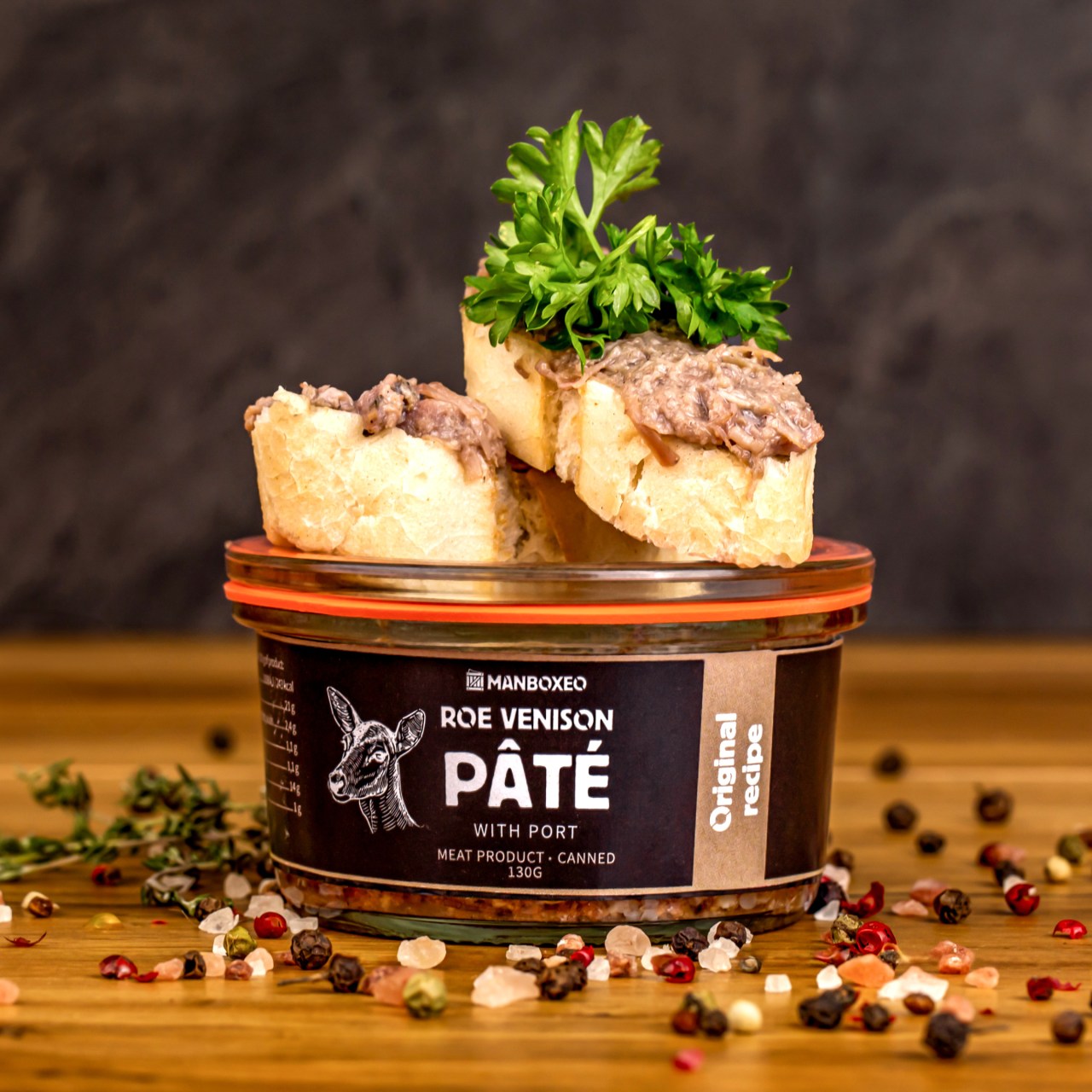 Őzpástétom portói borral – Az őzhús egyedi íze miatt továbbra is keresett csemege. A durván darált őzhús és a portói bor házassága igazán különleges ízt eredményez. Gluténmentes.
