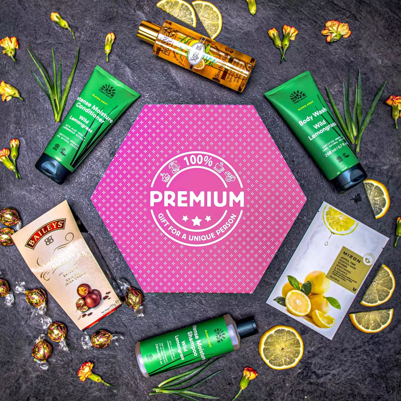 A citromfű nagy népszerűségre tett szert a minőségi kozmetikumokban antioxidáns és regeneráló hatása révén. Ezért válogattuk össze a citromfüvet tartalmazó legjobb termékeket, szövetmaszkot, tápláló tusfürdőt és finom csokoládé trüffeleket adtunk hozzá a háborítatlan boldogság pillanataira. Mindezt az elegáns, hatszögletű Giftboxeo dobozban találja, amely a hagyományosan az arisztokráciához kötődő lila színben pompázik. Röviden, egy ajándék, amely királymód tetszeni fog.