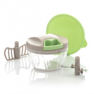 Az eredeti és praktikus kézi daráló úgy működik, hogy egy zsinór meghúzásával a darálószerkezet mozgásba lendül. Minél tovább húzza a zsinórt, annál finomabbra darálja az élelmiszert. Az éles pengékkel a zöldségeket és a fűszernövényeket is fel tud dolgozni, sőt, sima pestót vagy pürét is készíthet. A készlet tartalmaz egy habverő- és keverő (például tojás) tartozékot is, amelyet késekre cserélhet, valamint egy praktikus fedelet, amely lezárja a darálót, és az felaprított ételek tárolását is lehetővé teszi.